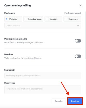 - Når du er tilfreds med din meningsmåling, klik 'Publicer' eller 'Planlæg meningsmåling'.