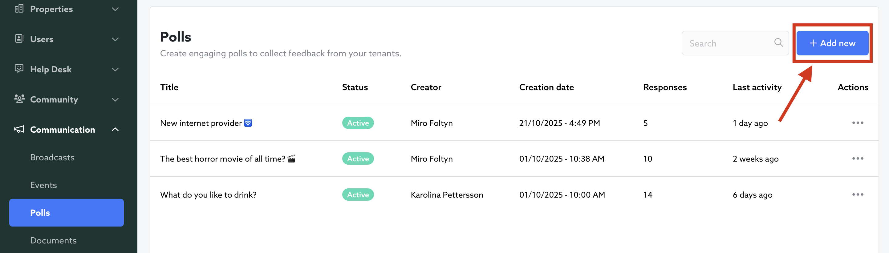 - Find 'Communication' in the left side menu, and click on 'Polls'.