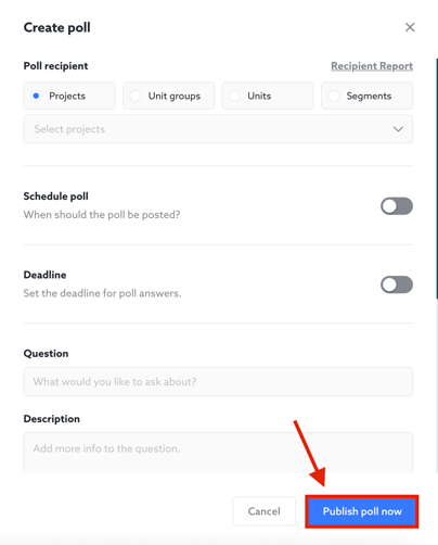 - When you are satisfied with your poll, click on 'Publish poll now' or 'Schedule poll'.